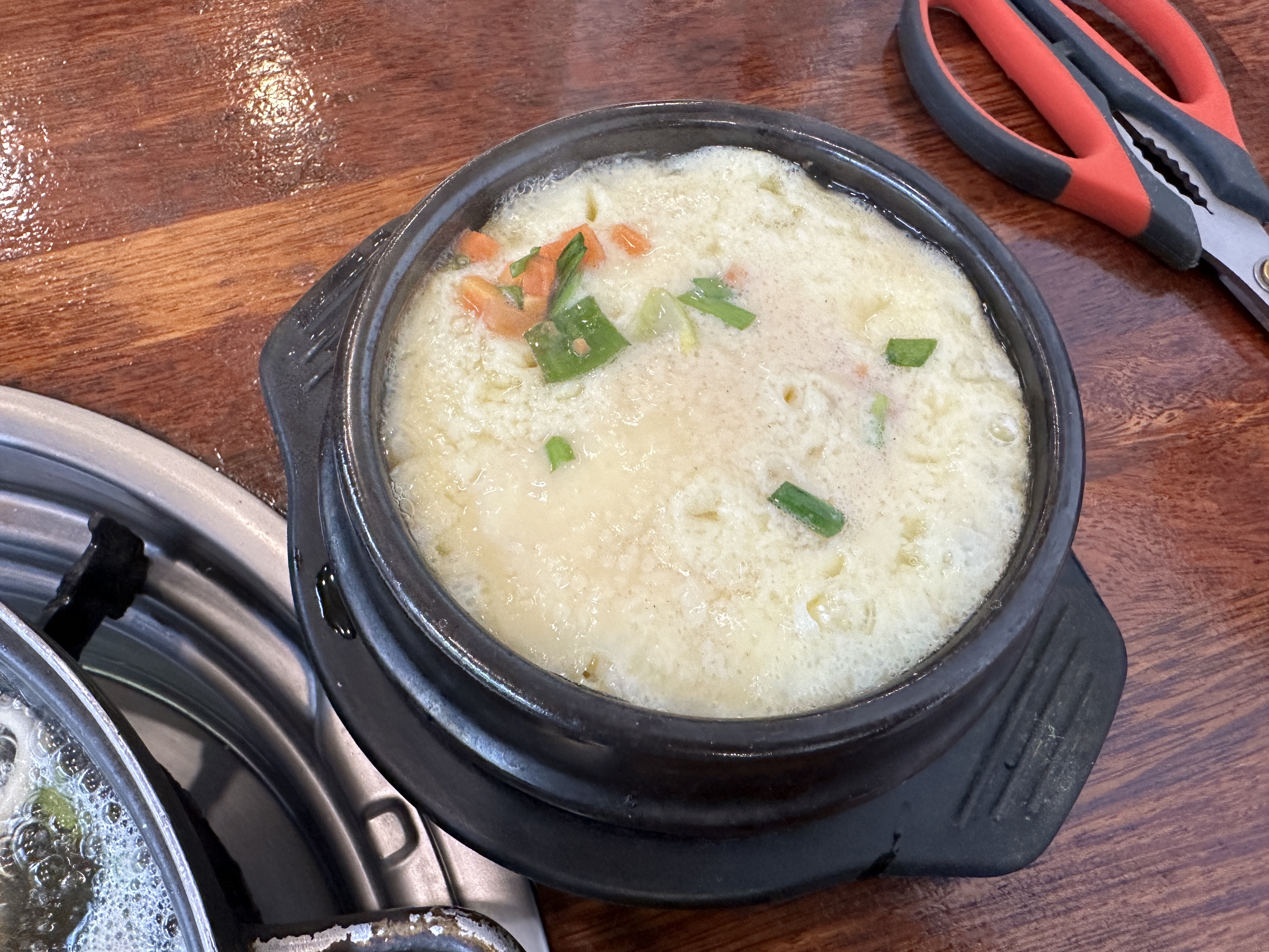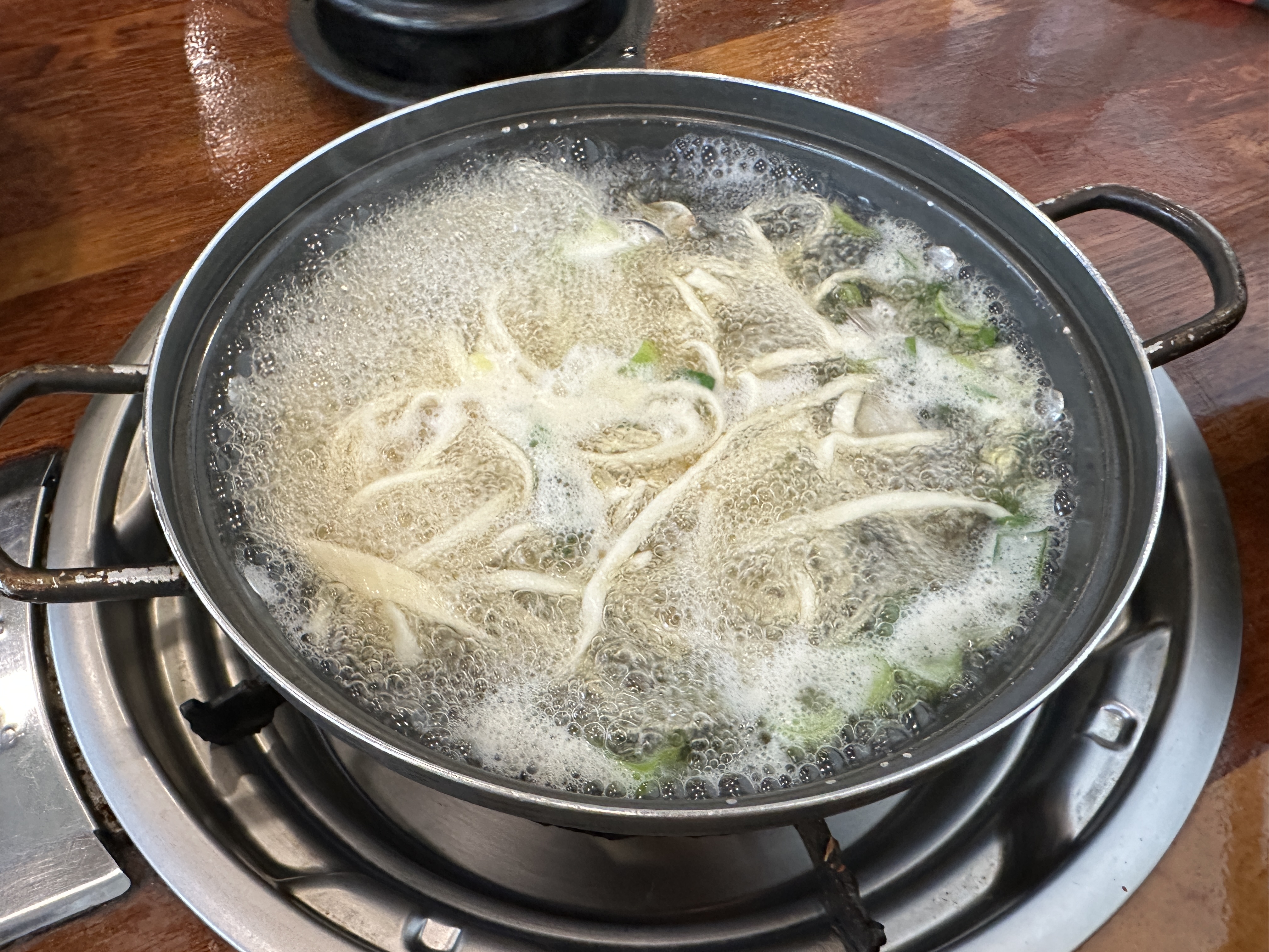 매콤한 낙지볶음 비빔밥과 계란찜을 함께 먹으니 간이 딱 맞았다. 밥을 다 먹은 후엔 칼국수를 먹으면 되는데, 꼭 미리 불을 꺼야 한다. 너무 오래 끓이니 국물이 좀 짜졌다. 조개와 파가 들어가서 시원한 맛이 났다. 밥 한 대접을 다 먹고 국수까지 먹고나니 배가 무척 불렀다. 맛있는 한 끼였다.