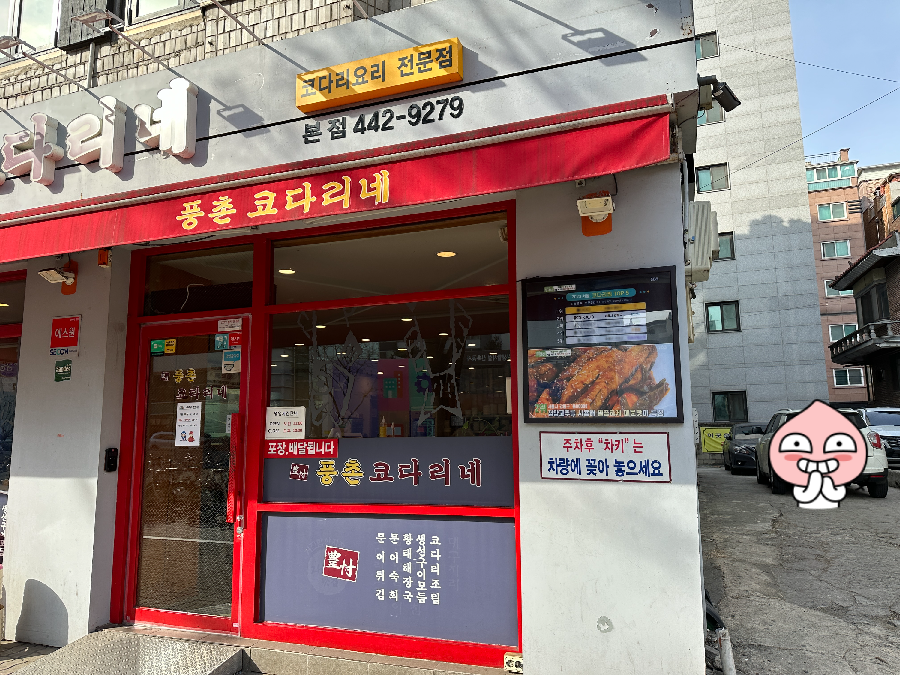 풍촌코다리네 본점은 암사역 바로 앞에 있었다. n사이트 기준으로 평점 4.43점으로 높았다. 게다가 모 방송 프로그램에서 선정한 서울 코다리 맛집 TOP 5중 2위로 선정되기도 했단다. 안 갈 이유가 없었다.