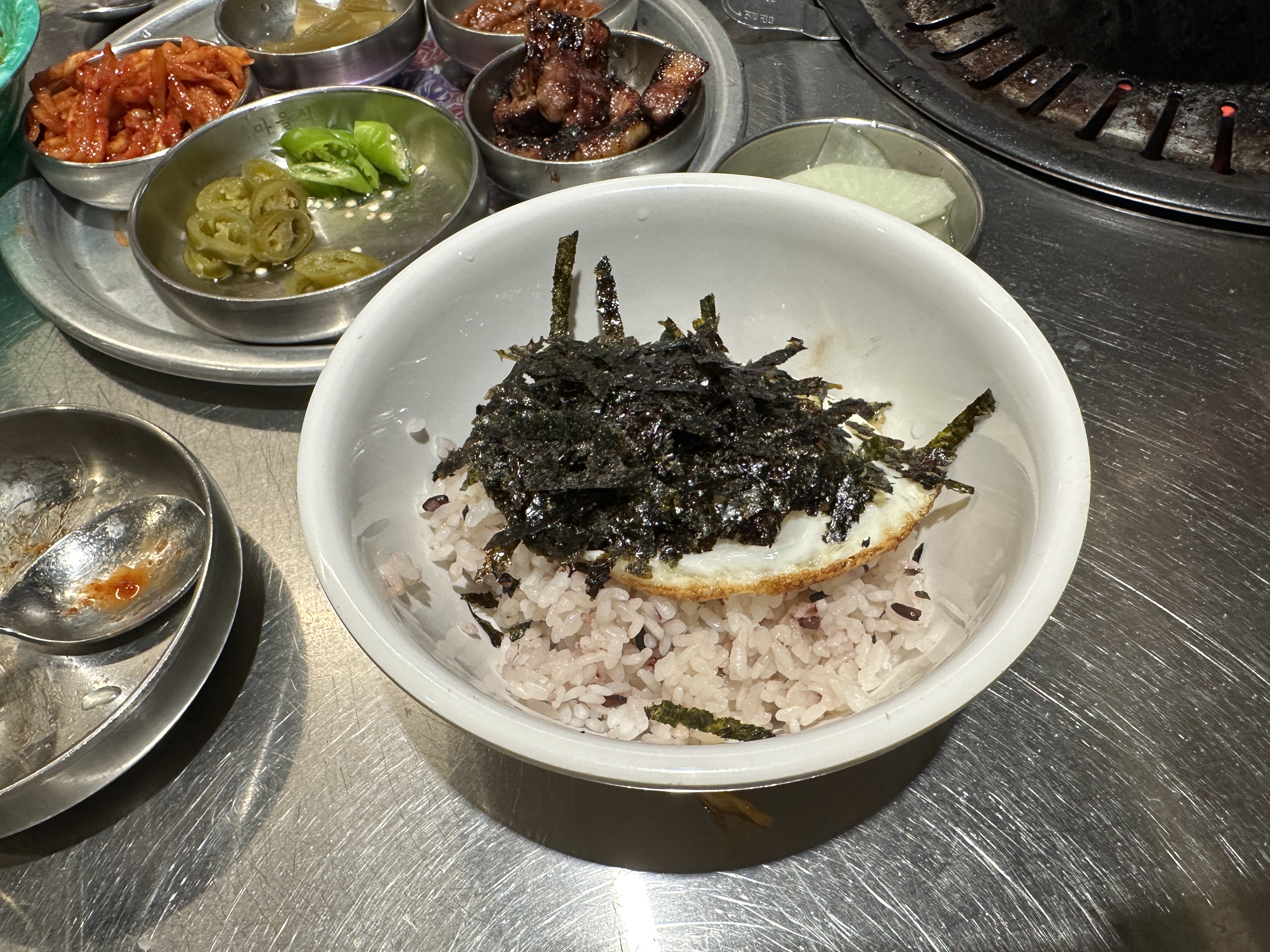 많이 먹고 싶어서 친구와 나는 공깃밥 하나를 추가했다.
