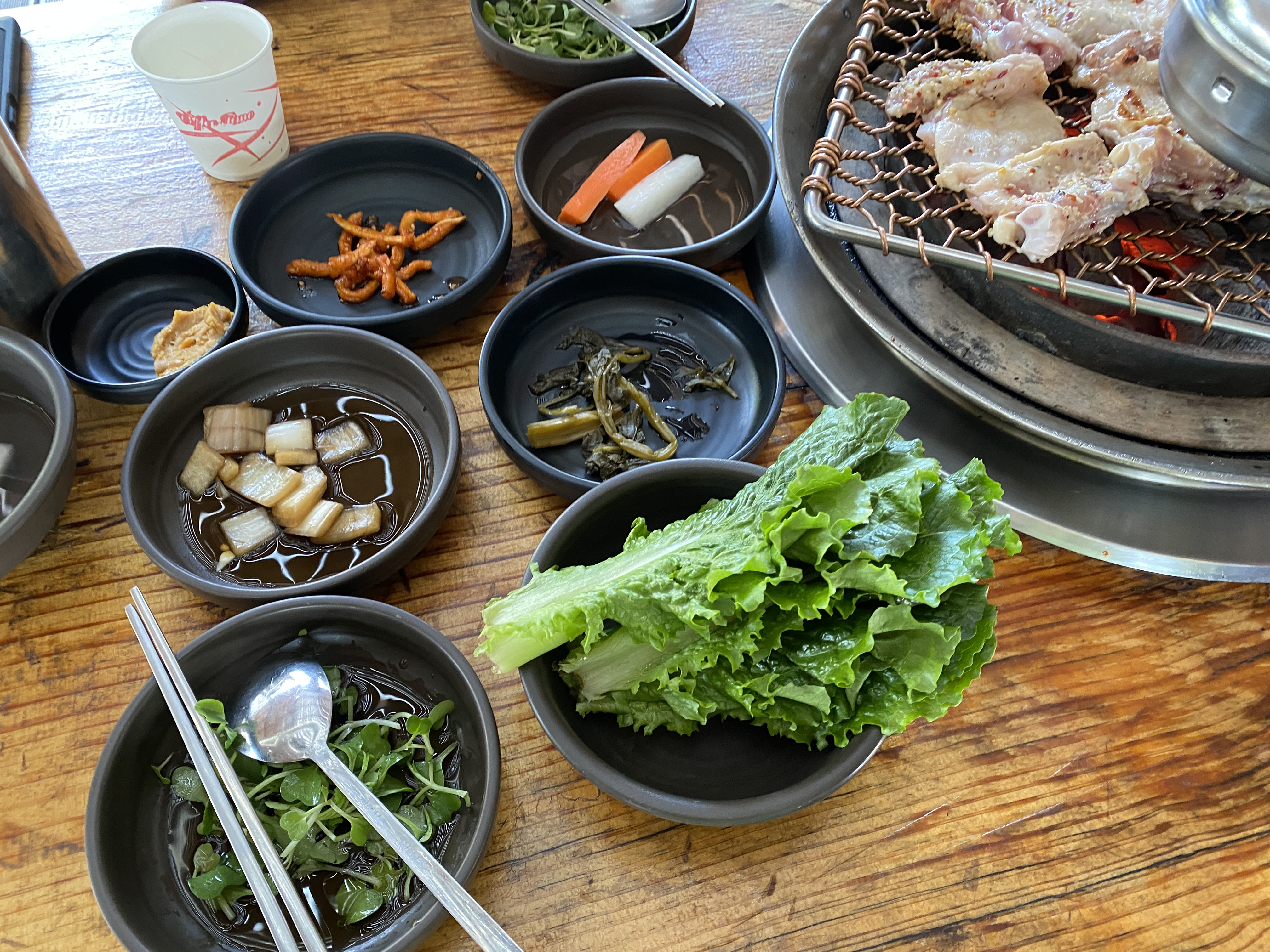 성시경유튜브에서는 사장님이 구워주시는데 실제로는 구워주지 않아요. 직접 구워야 해요.